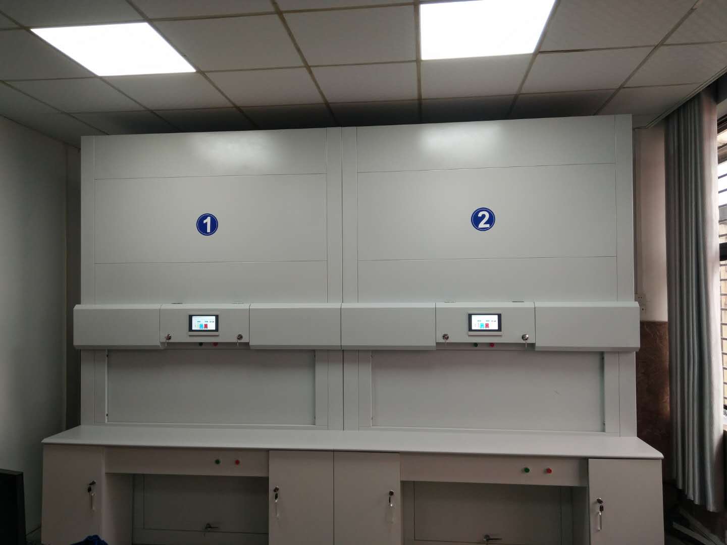 湖北某供电局使用智能档案回转柜管理干部人事档案,量身定做型号:XW-PLC-11A 规格尺寸:1800*1290*2750 带工作台 2组,合计存放管理3.5cm厚档案盒880盒。满足了现有档案的智能化、数字化管理。