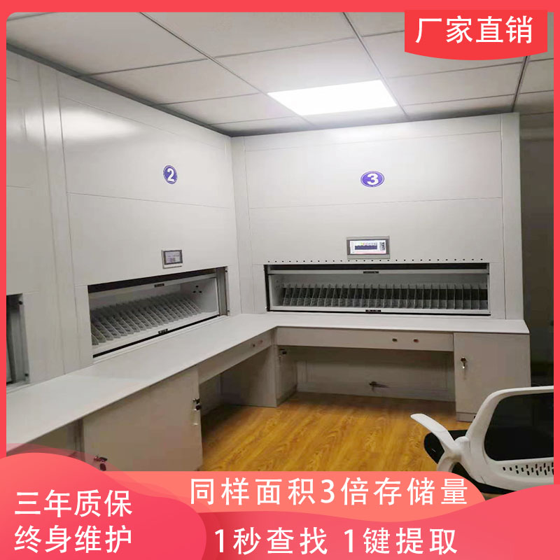 自动选层柜还有一个很重要的特性就是存储量非常的大,同样面积的存储量是普通文件柜的3倍。这样也是无形中节省了我们档案室的库房面积。