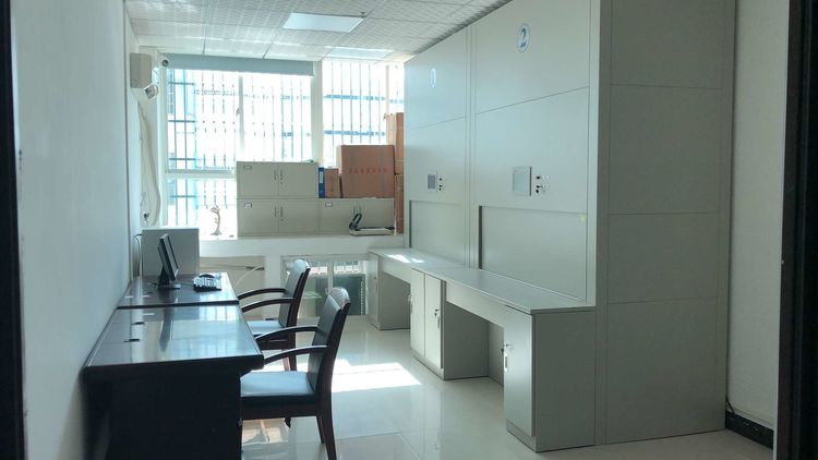 某武装部使用“智能回转柜”实现档案智能化查找。「虎恒智能」