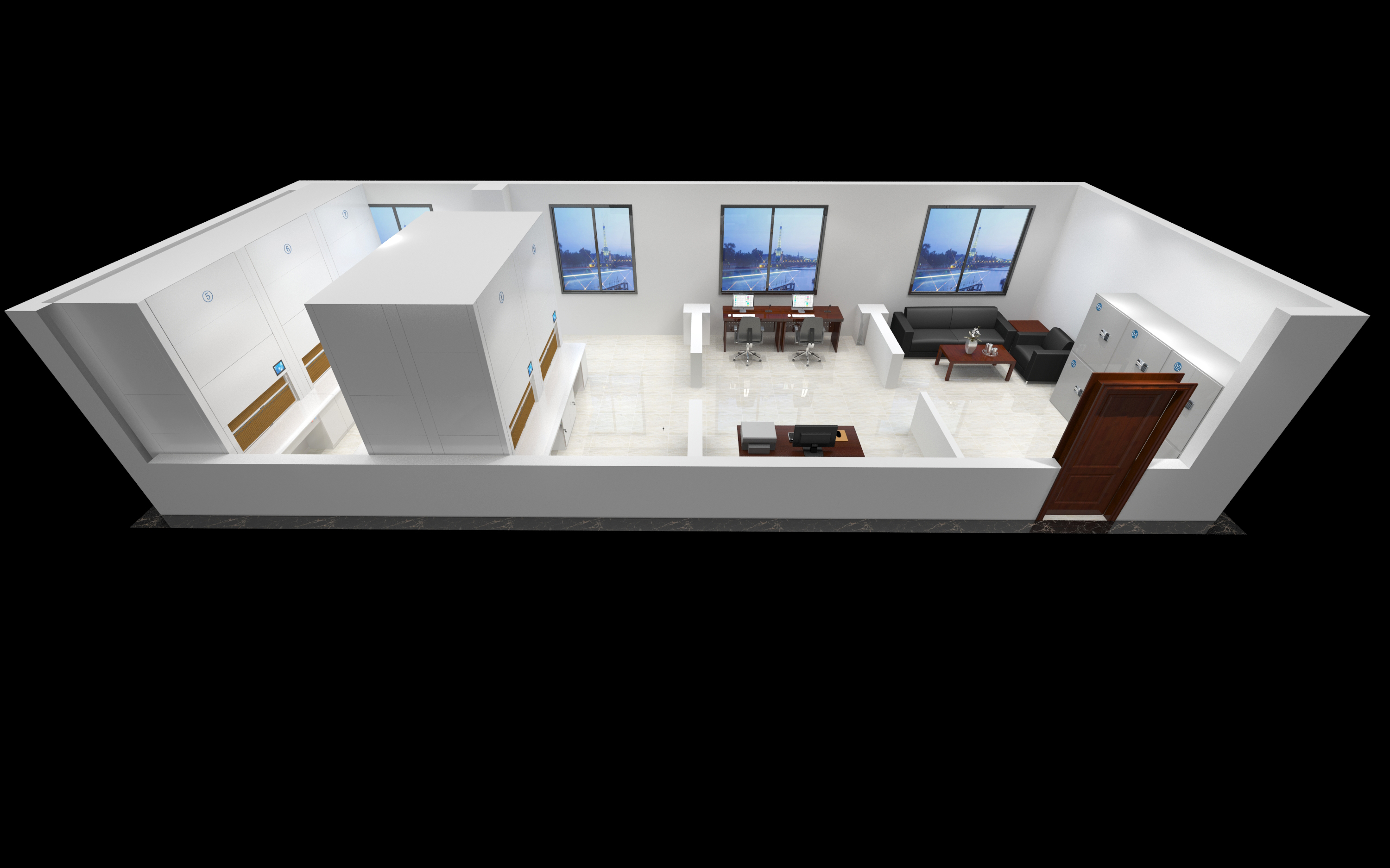 100平米的档案室建设智慧档案库房需要分为三个区(档案库房、办公区、阅览区)等。根据档案库房的建设要求及依据《档案库房技术管理暂行规定》及档案安全保护措施的"十防"(防高低温、防盗、防火、防水、防虫、防鼠、防尘、防光、防霉、防污染)等要求。档案库房一般选择智能回转柜或者智能密集架,办公室和阅览室根据需求就行大小分格。环境系统主要安装在档案库房,集中在办公室统一管理。